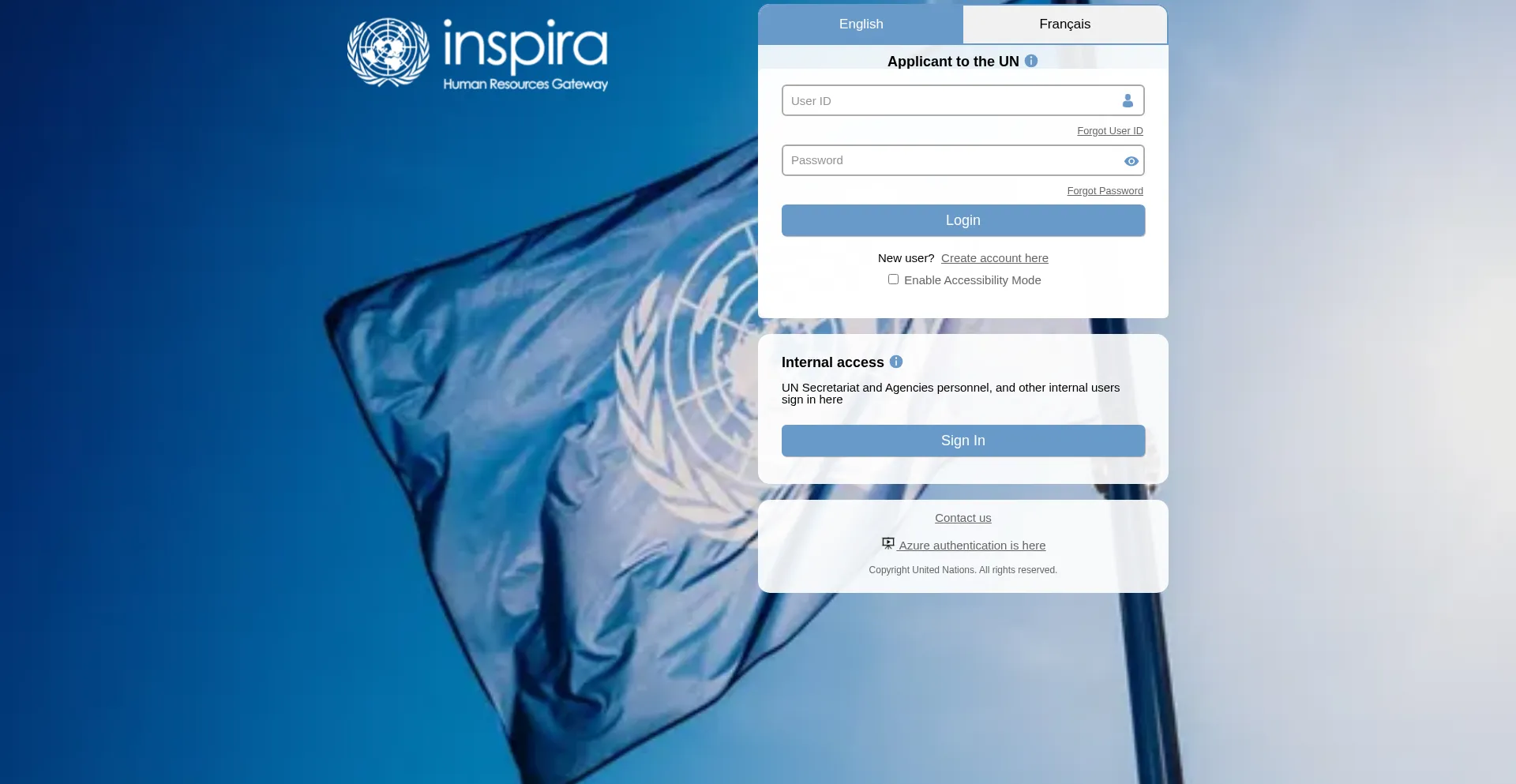 该网站实现数据收集表单,请求个人信息,包括姓名、电子邮件地址、电话号码或其他敏感详细信息。用户应验证 inspira.un.org 的合法性并在提交个人数据前查看隐私政策。