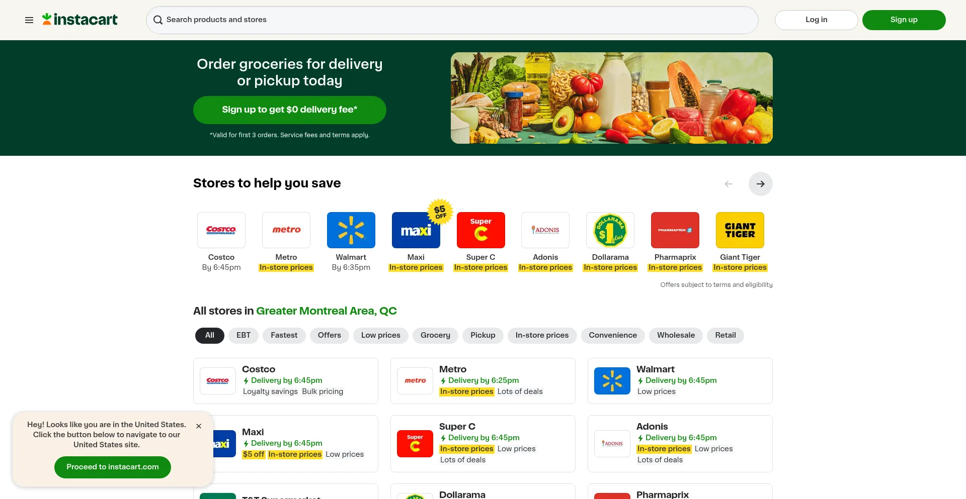 Instacart delivers groceries from local stores in as fast as 1 hour.