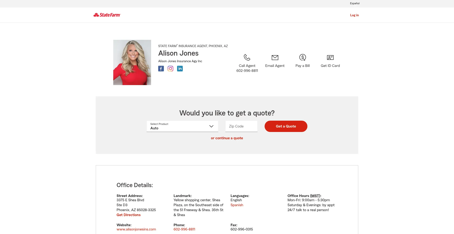 Contact Phoenix State Farm Agent Alison Jones at (602) 996-8811 for life, home, car insurance and more. Get a free quote now