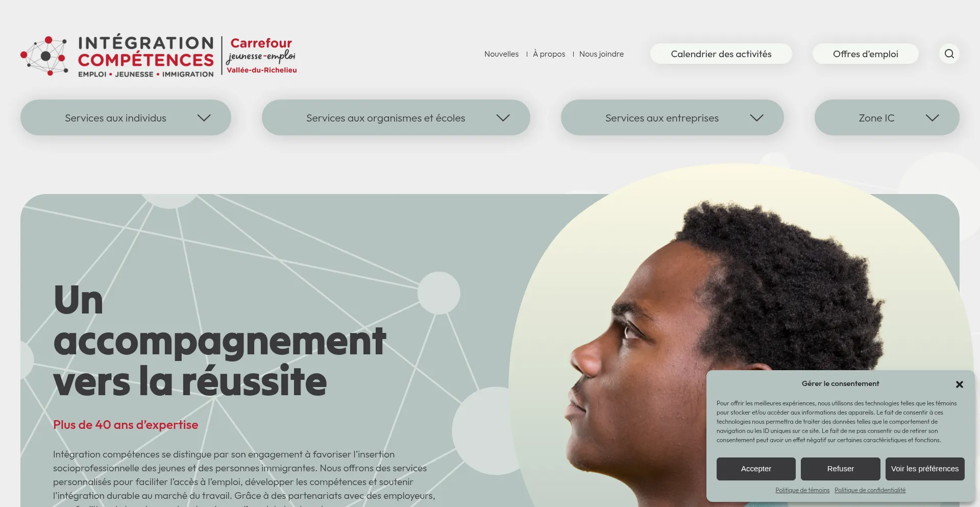 网站上存在社交媒体链接表明 integrationcompetences.ca 在社交媒体上维护官方账户,这是可信度和参与度的积极信号。