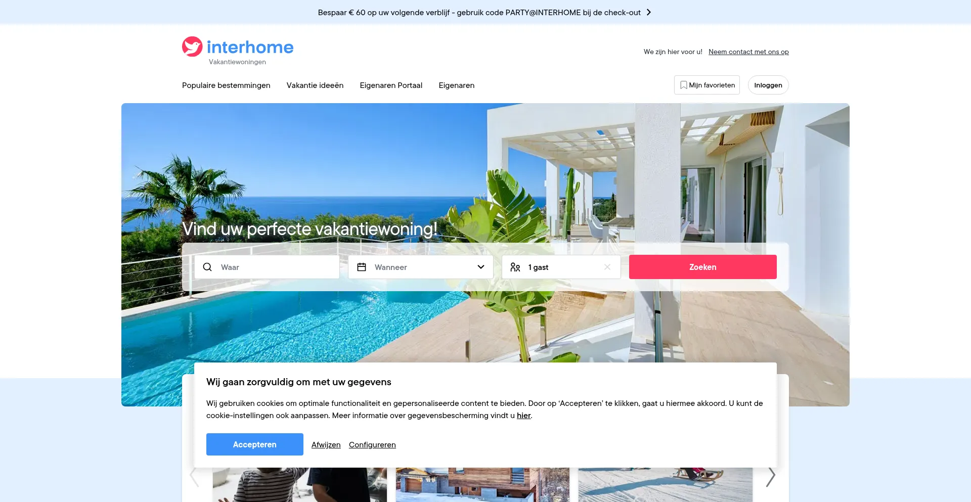 Vind uw ideale vakantiewoning bij Interhome. Kies uit circa 40.000 gecontroleerde vakantiewoningen in meer dan 20 landen.