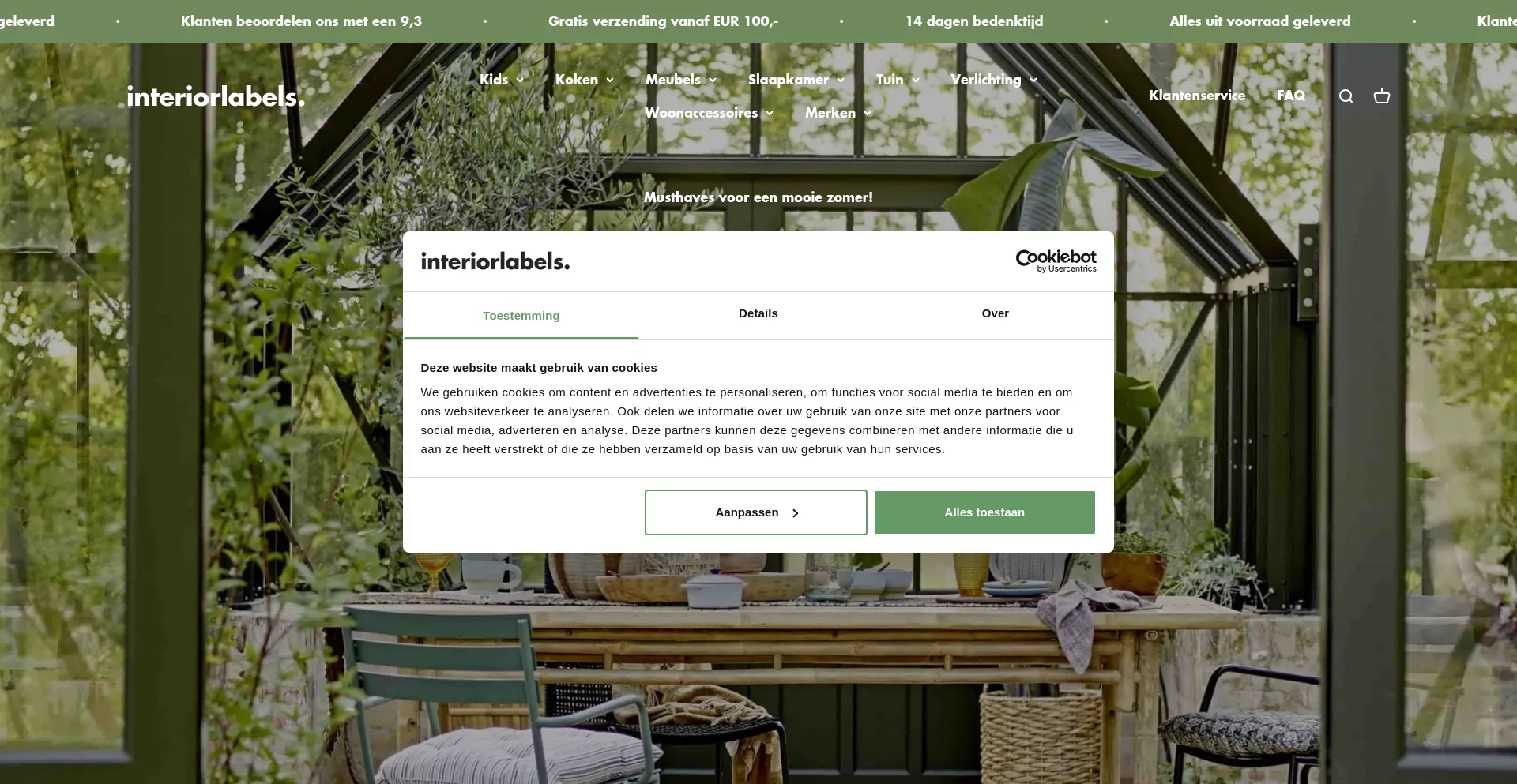 该网站实现符合GDPR或CCPA等隐私法规的cookie同意机制。这表明 interiorlabels.nl 遵守数据保护标准并为用户提供对个人数据收集实践的控制。