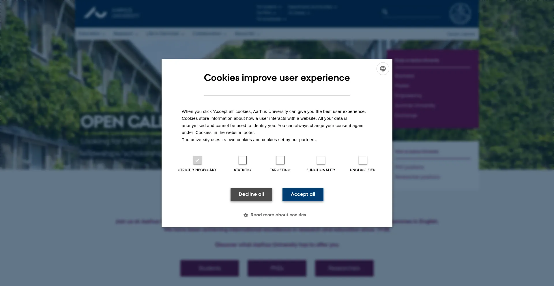 该网站实现符合GDPR或CCPA等隐私法规的cookie同意机制。这表明 international.au.dk 遵守数据保护标准并为用户提供对个人数据收集实践的控制。