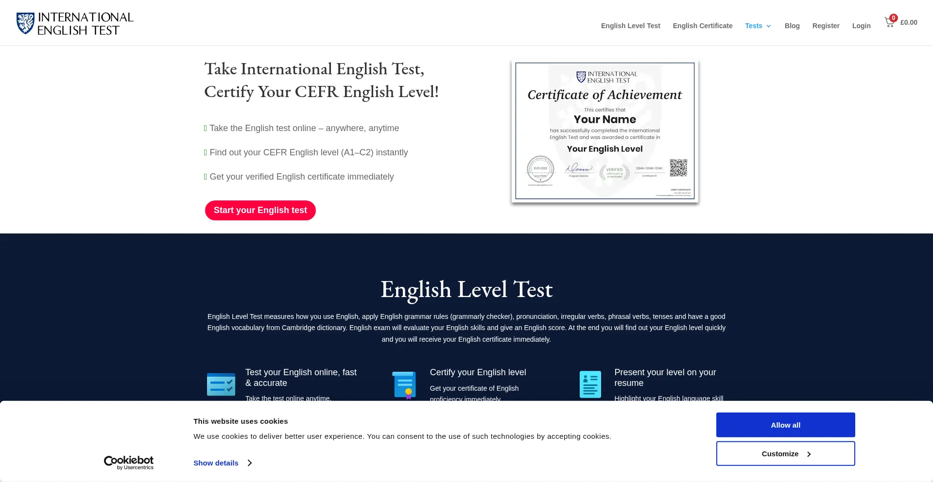Test your English level online with International English Test. Discover your CEFR level A1–C2 and get a verified certificate accepted worldwide.
