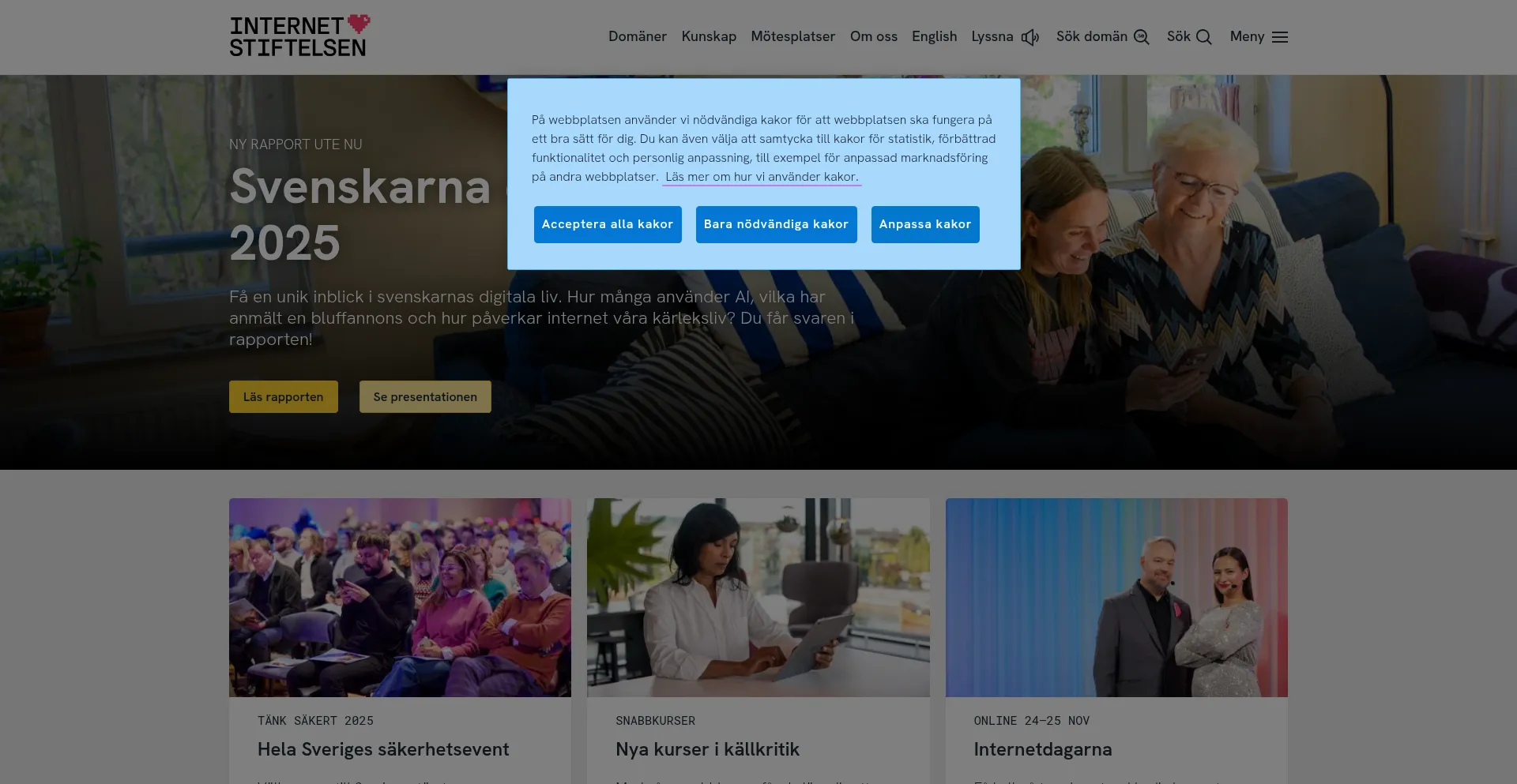 该网站实现符合GDPR或CCPA等隐私法规的cookie同意机制。这表明 internetstiftelsen.se 遵守数据保护标准并为用户提供对个人数据收集实践的控制。