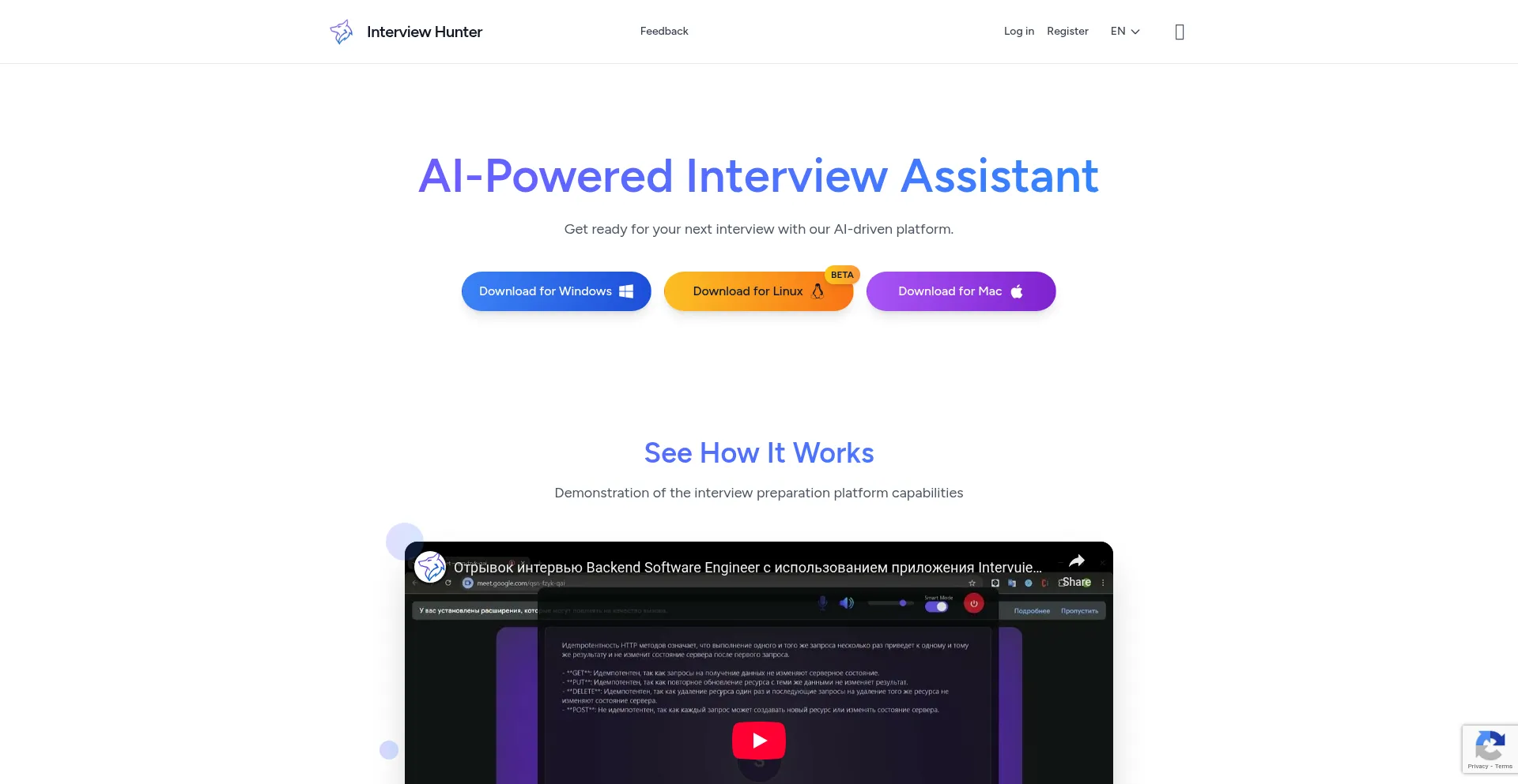 AI interview assistant providing real-time support during video calls. Get instant answers, technical help, and confidence boost. Works with Zoom, Google Meet, Teams.