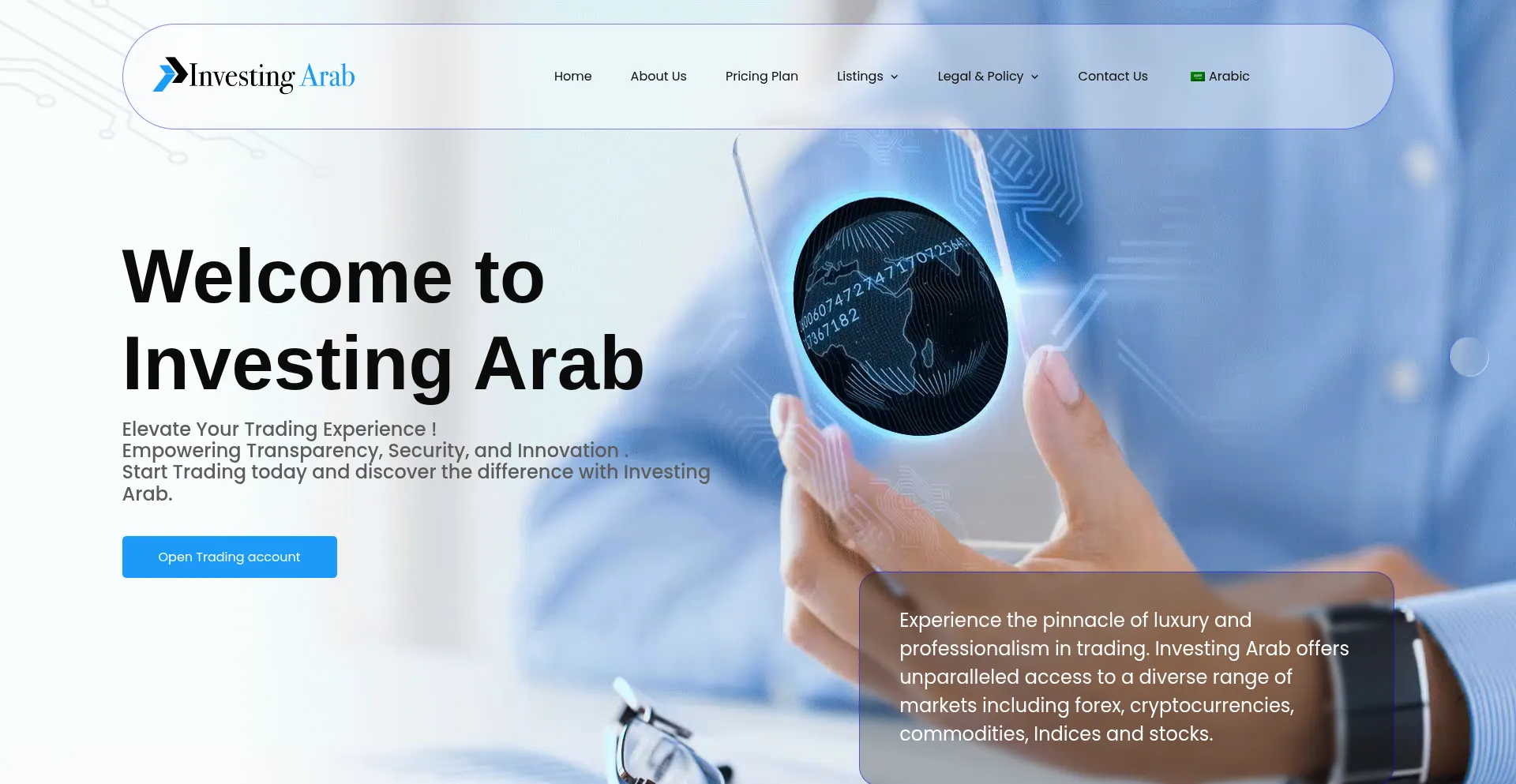 该网站实现数据收集表单,请求个人信息,包括姓名、电子邮件地址、电话号码或其他敏感详细信息。用户应验证 investingarab.com 的合法性并在提交个人数据前查看隐私政策。