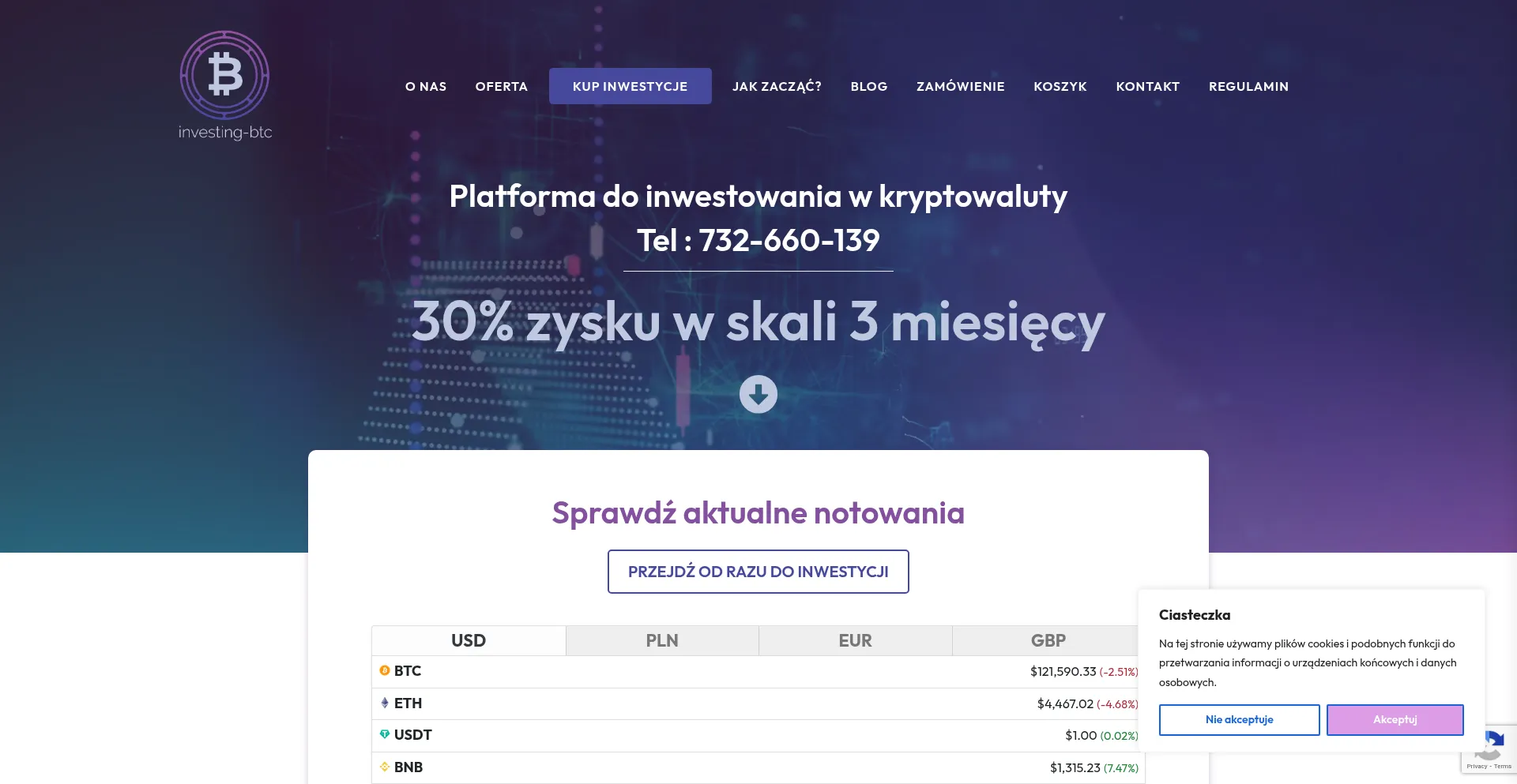 分析表明 investingbtc.pl 作为电子商务平台运营,促进商品或服务的在线交易。该网站实现了购物车功能、支付处理系统和产品目录功能,这些是商业零售运营的典型特征。