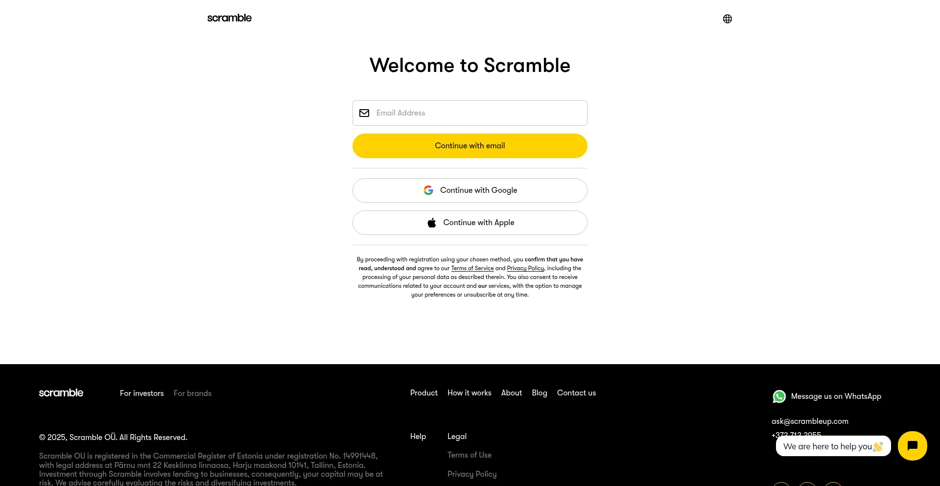 该网站实现数据收集表单,请求个人信息,包括姓名、电子邮件地址、电话号码或其他敏感详细信息。用户应验证 investor.scrambleup.com 的合法性并在提交个人数据前查看隐私政策。