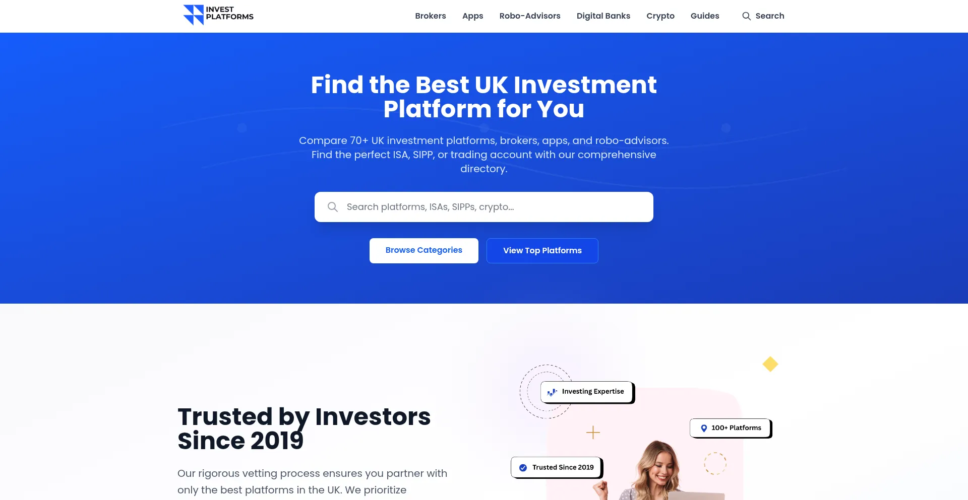 Compare the best UK investment platforms, brokers, and apps. Find ISAs, SIPPs, robo-advisors, and crypto exchanges with our comprehensive directory.
