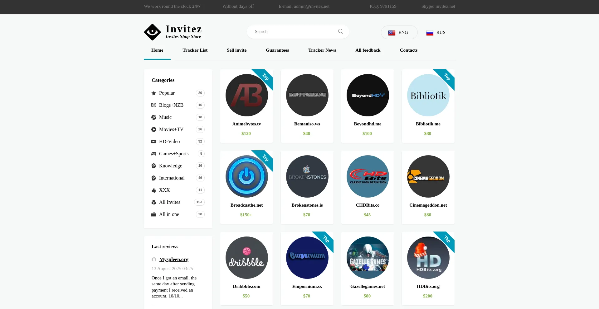 Invitez.net - buy best private torrent trackers in one place