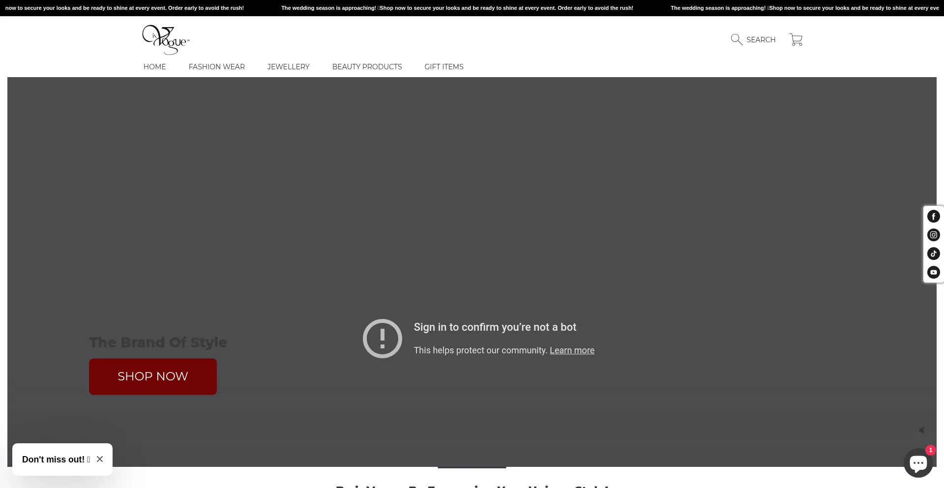 网站上存在社交媒体链接表明 invogueuk.com 在社交媒体上维护官方账户,这是可信度和参与度的积极信号。