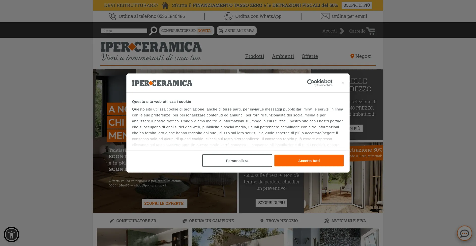 该网站实现符合GDPR或CCPA等隐私法规的cookie同意机制。这表明 iperceramica.it 遵守数据保护标准并为用户提供对个人数据收集实践的控制。
