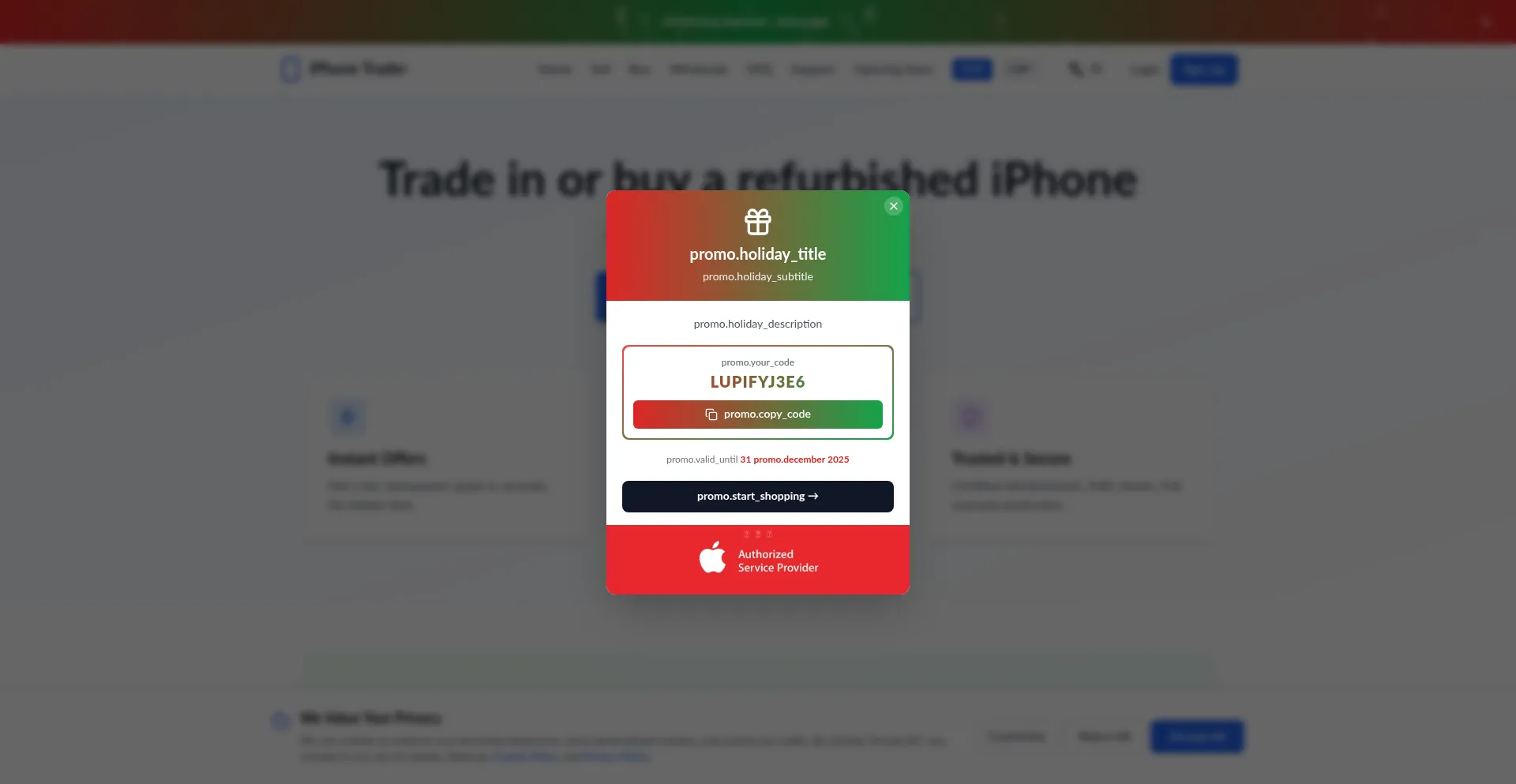 该网站实现符合GDPR或CCPA等隐私法规的cookie同意机制。这表明 iphone-trader.com 遵守数据保护标准并为用户提供对个人数据收集实践的控制。