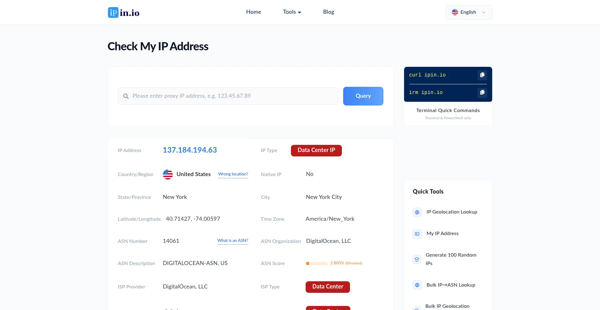 Quickly check your IP address details online, detect proxy type, location, ASN, ISP, and more. Free anonymous proxy recommendations, IP security check, and API interface.