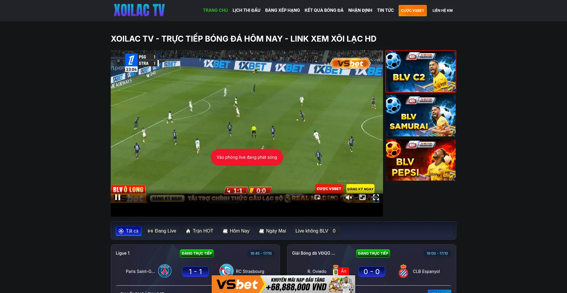 Xoilac TV phát trực tiếp bóng đá HD, miễn phí, không giật lag và đa dạng link dự phòng. Link Xôi Lạc trực tuyến hôm nay cùng đội ngũ BLV chuyê...