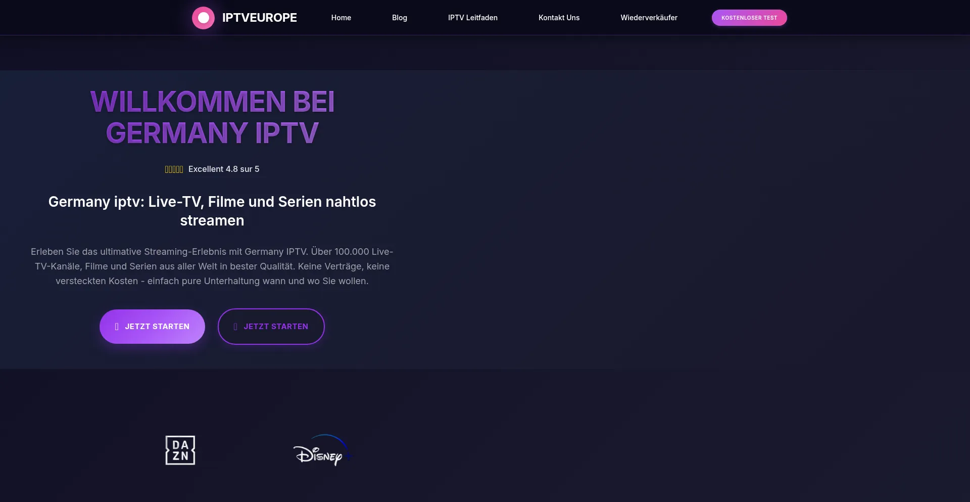 Premium IPTV service for Germany - High quality streaming with 4K channels, sports, movies and series