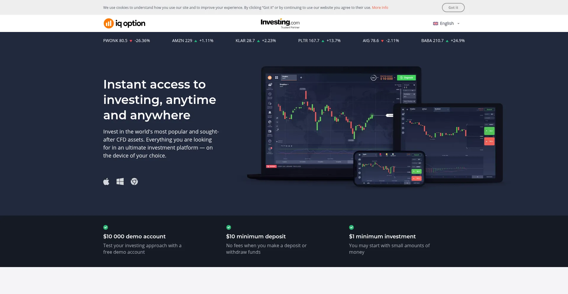 该网站实现符合GDPR或CCPA等隐私法规的cookie同意机制。这表明 iqoption.financial 遵守数据保护标准并为用户提供对个人数据收集实践的控制。