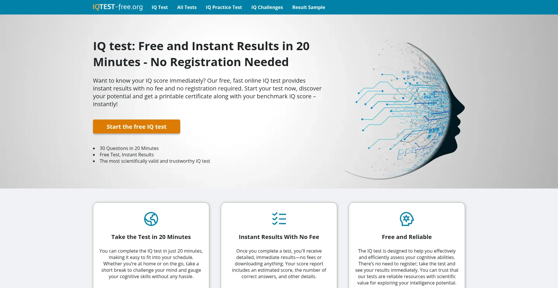 IQ Test: Free And Instant Results In 20 Minutes - No Registration Needed