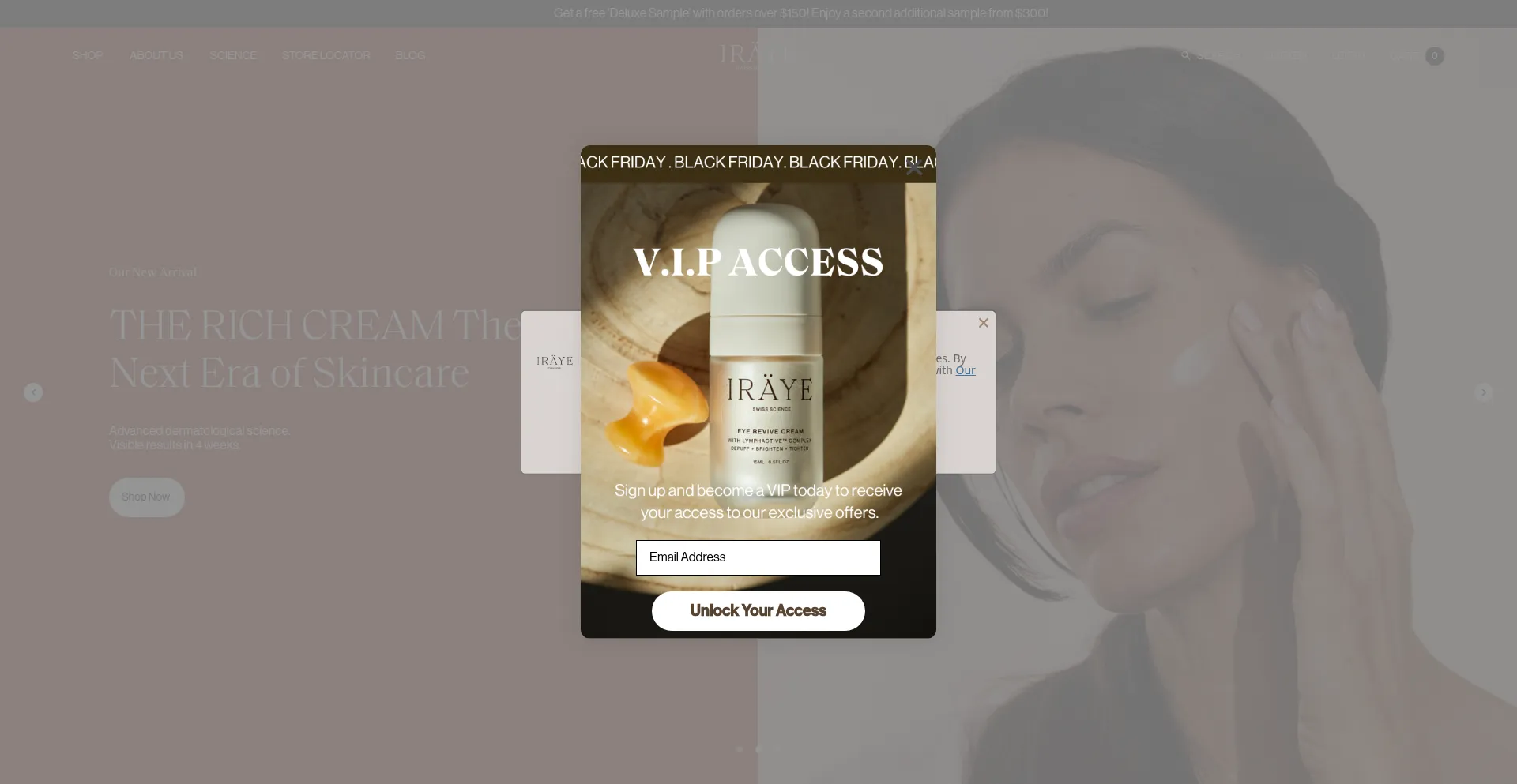 该网站实现符合GDPR或CCPA等隐私法规的cookie同意机制。这表明 irayeskincare.com 遵守数据保护标准并为用户提供对个人数据收集实践的控制。
