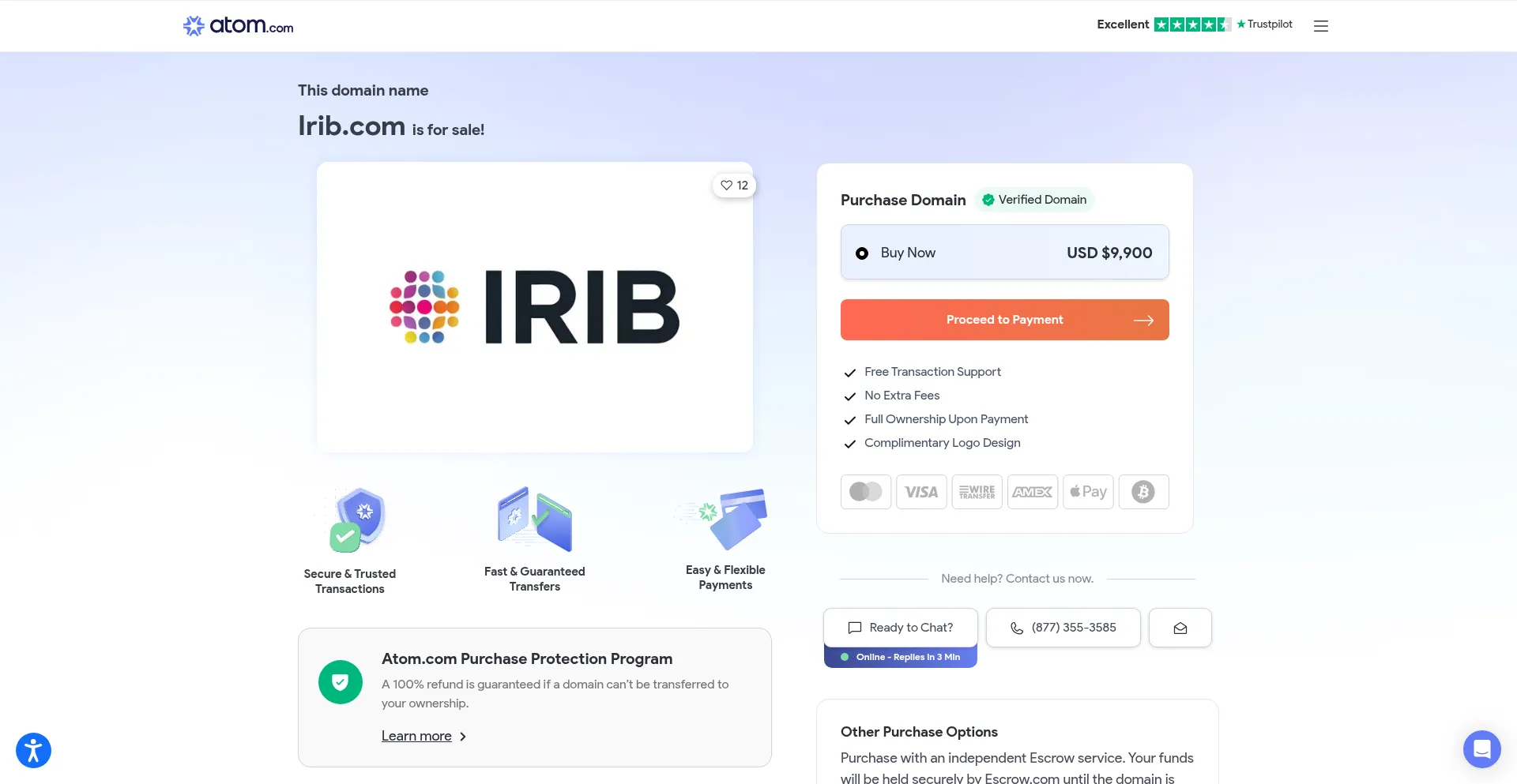 Irib.com is for sale at Atom. Buy this premium domain for $9,900USD and get a free logo. Irib.com has strong buyer interest, so act now!