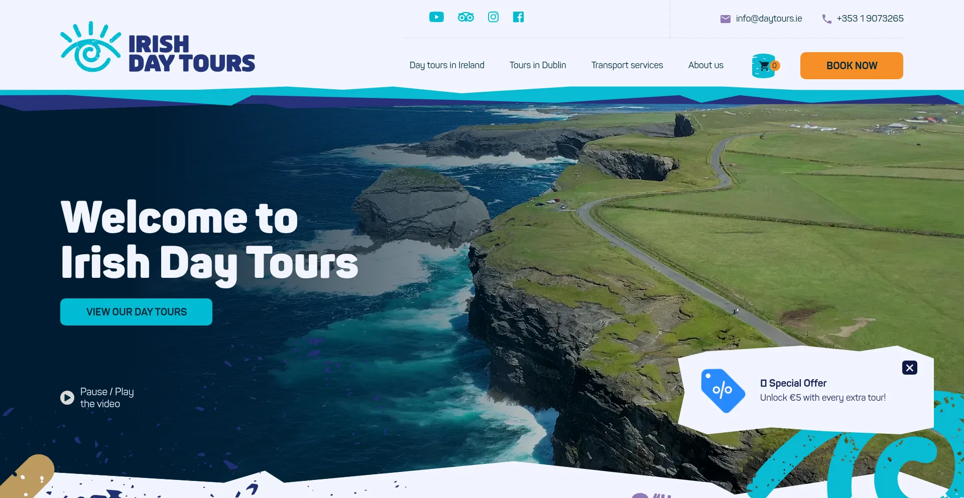 网站上存在社交媒体链接表明 irishdaytours.ie 在社交媒体上维护官方账户,这是可信度和参与度的积极信号。