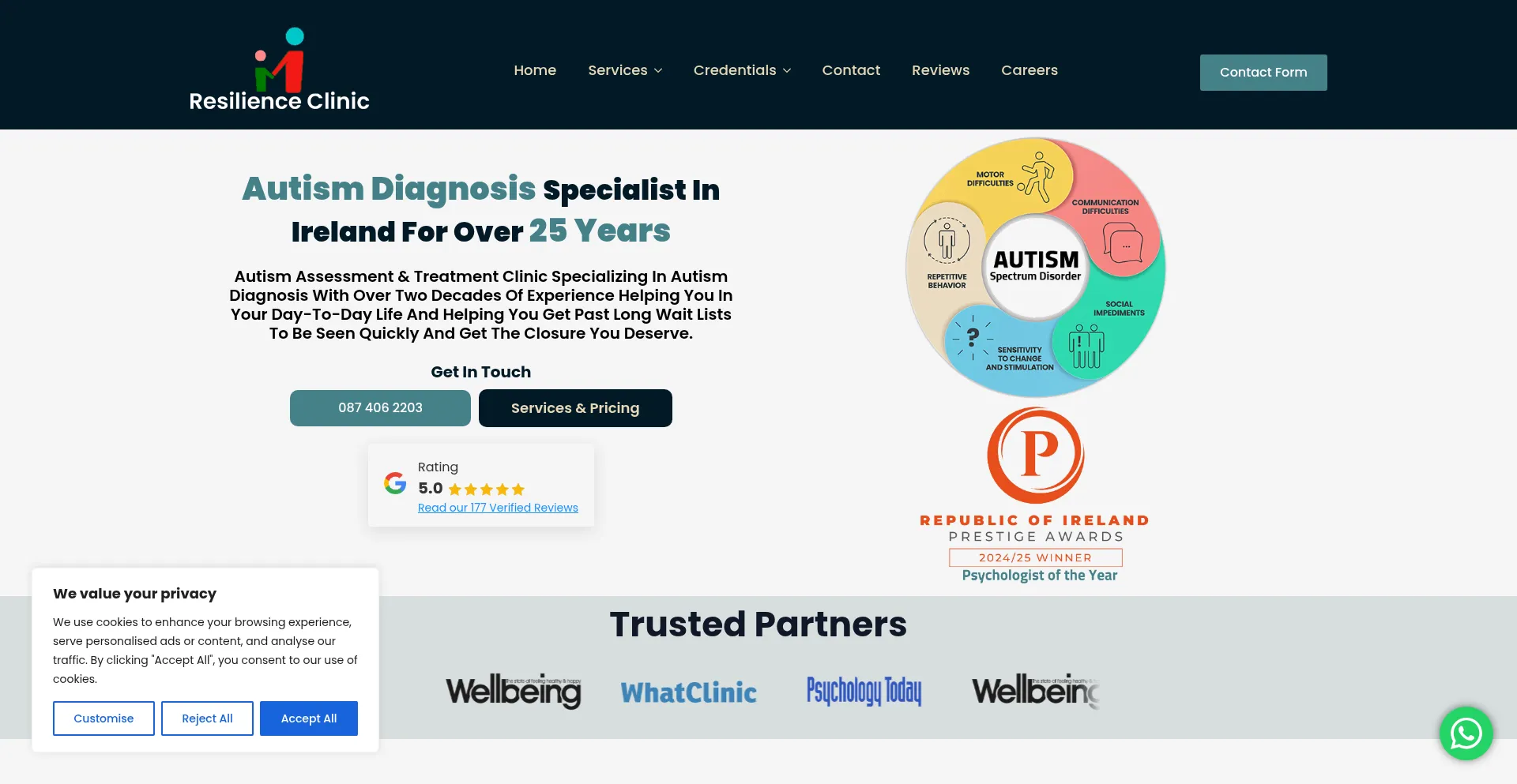Irish Resilience Clinic that Provides Autism Diagnosis and Treatment to the Irish public with the aim of getting people the help they need without a wait list