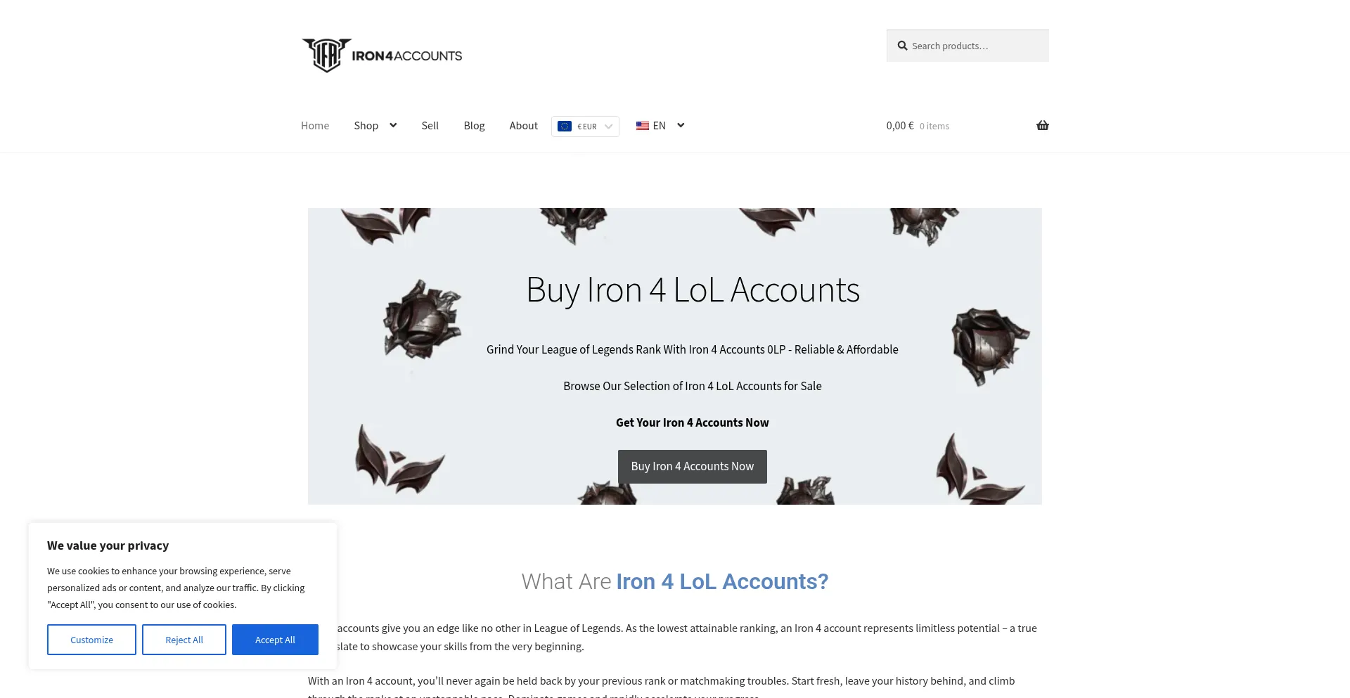 Buy Iron 4 LoL Accounts | Reliable & Affordable Accounts for Sale