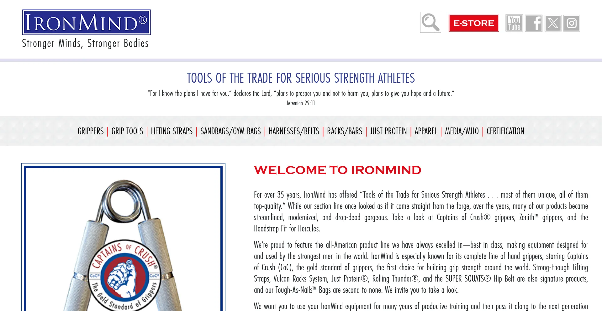 网站上存在社交媒体链接表明 ironmind.com 在社交媒体上维护官方账户,这是可信度和参与度的积极信号。