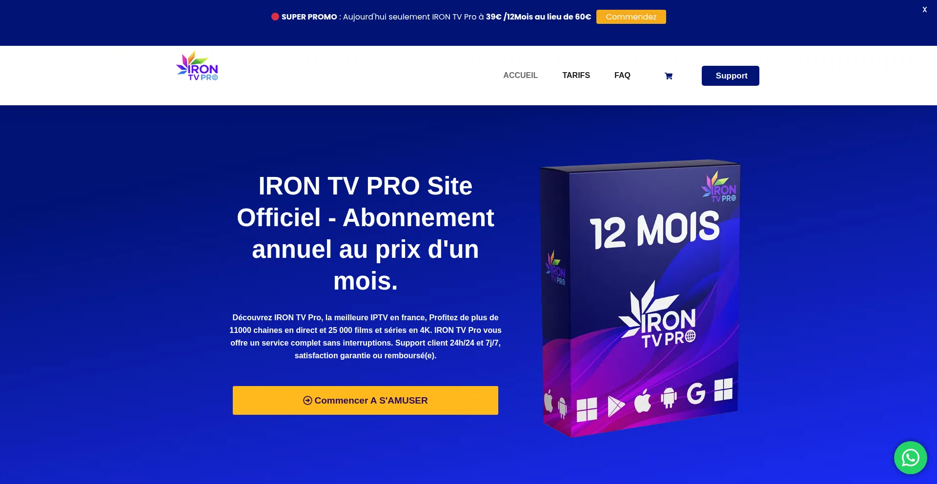 Officiel IRON TV Pro - Abonnement Annuel Au Prix Dun Mois