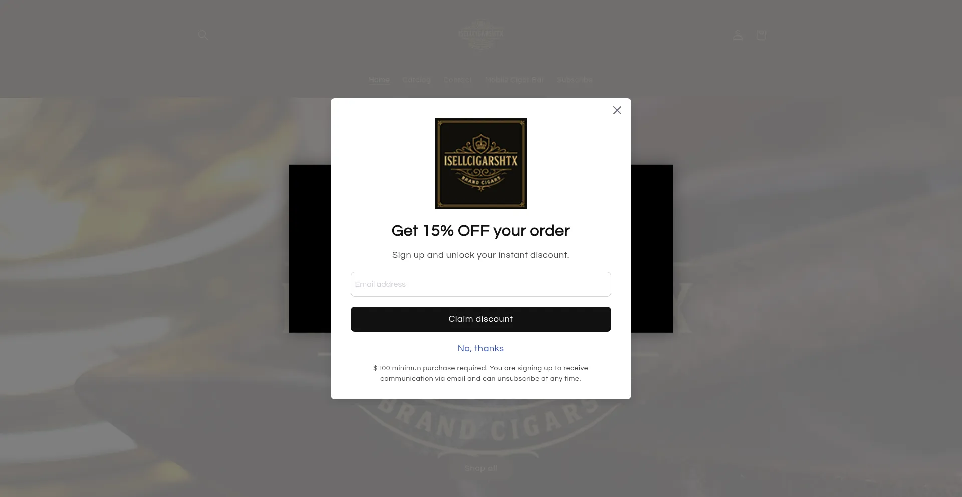 该网站实现数据收集表单,请求个人信息,包括姓名、电子邮件地址、电话号码或其他敏感详细信息。用户应验证 isellcigarshtx.com 的合法性并在提交个人数据前查看隐私政策。