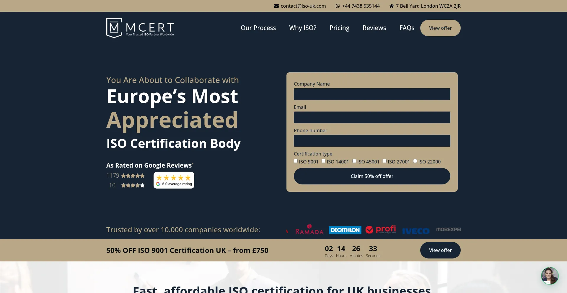 该网站实现数据收集表单,请求个人信息,包括姓名、电子邮件地址、电话号码或其他敏感详细信息。用户应验证 iso-uk.com 的合法性并在提交个人数据前查看隐私政策。