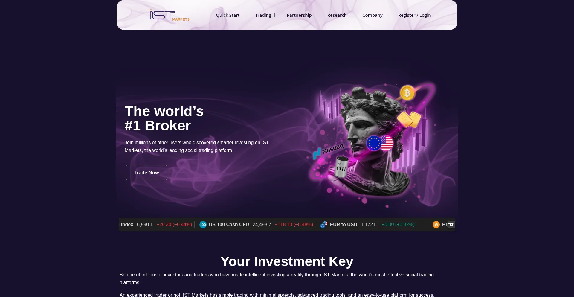 Discover IST Markets: a social, multi-asset trading platform with MT5 support, zero-commission stocks, fractional shares, CFDs, demo account, and secure segregated funds.