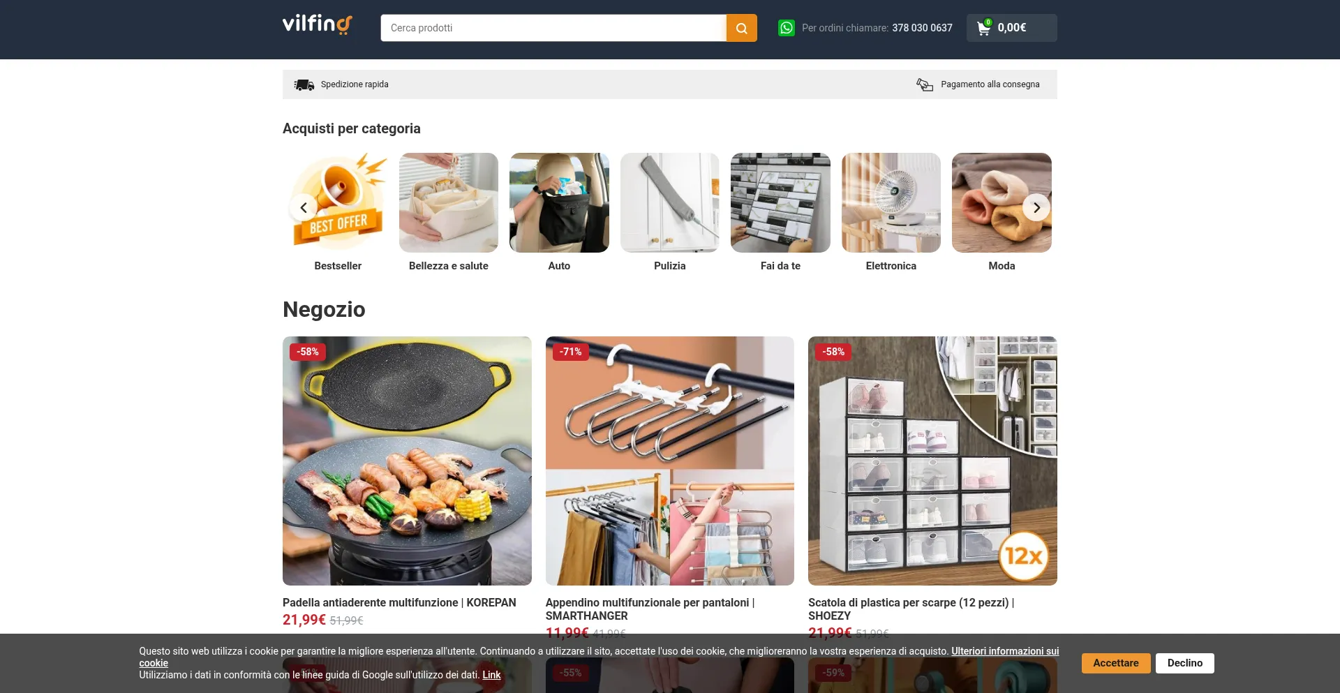 分析表明 it.vilfino.com 作为电子商务平台运营,促进商品或服务的在线交易。该网站实现了购物车功能、支付处理系统和产品目录功能,这些是商业零售运营的典型特征。