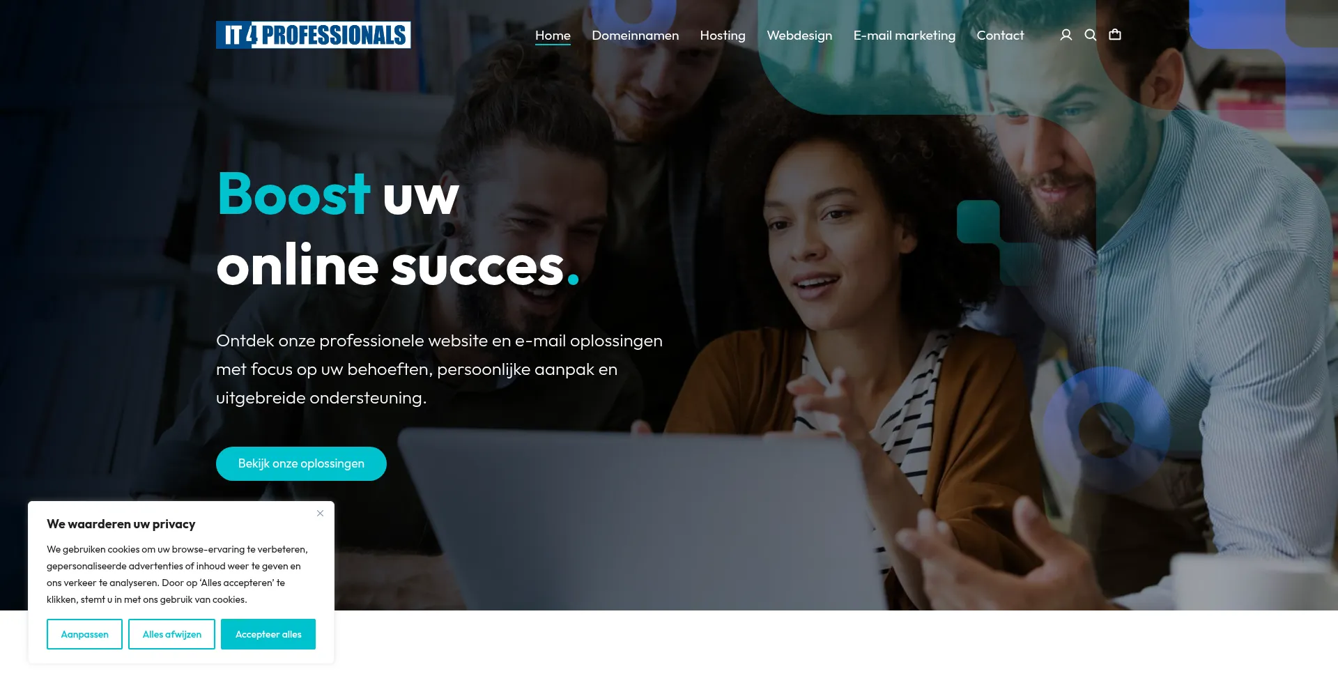 Geef uw zaak een online boost met onze professionele website en e-mail oplossingen. Persoonlijke aanpak, 20+ jaar expertise, uitgebreide ondersteuning.