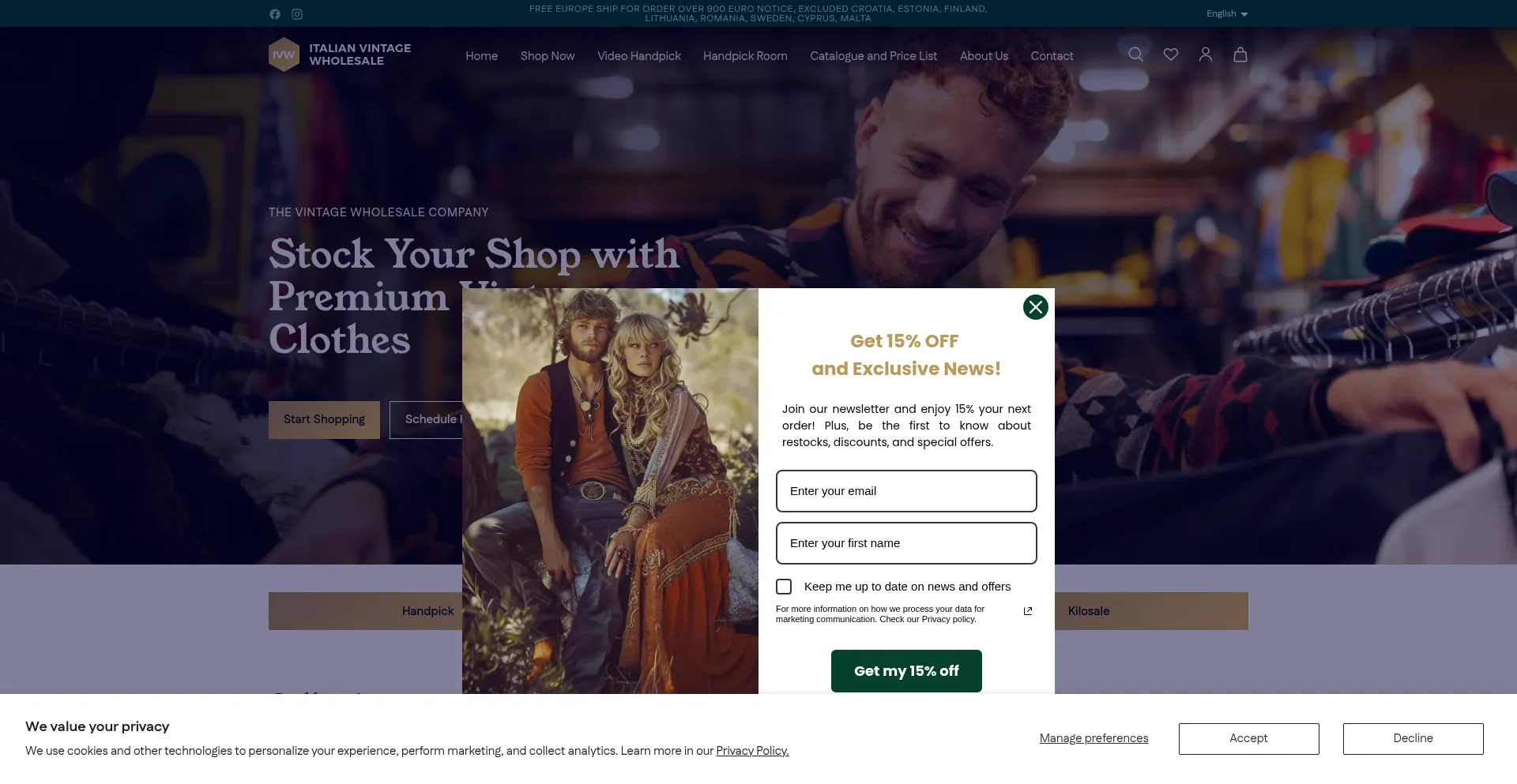 该网站实现符合GDPR或CCPA等隐私法规的cookie同意机制。这表明 italianvintagewholesale.com 遵守数据保护标准并为用户提供对个人数据收集实践的控制。