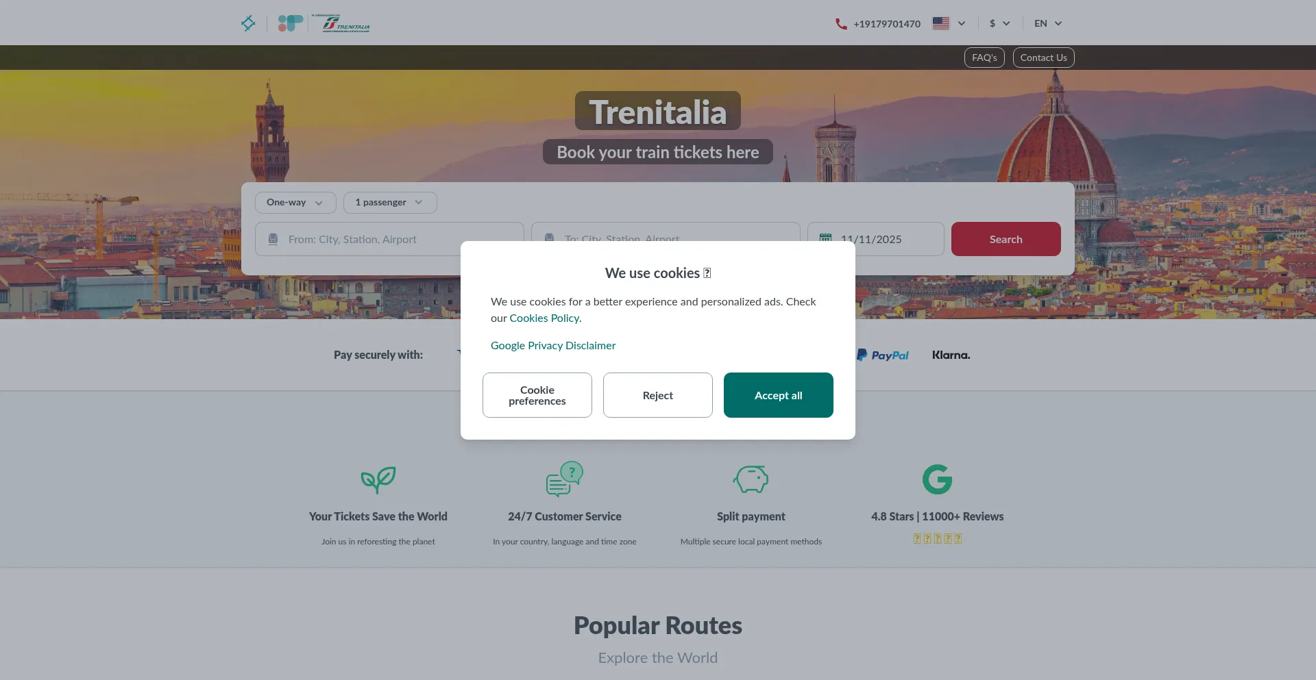 该网站实现符合GDPR或CCPA等隐私法规的cookie同意机制。这表明 italiatren.com 遵守数据保护标准并为用户提供对个人数据收集实践的控制。