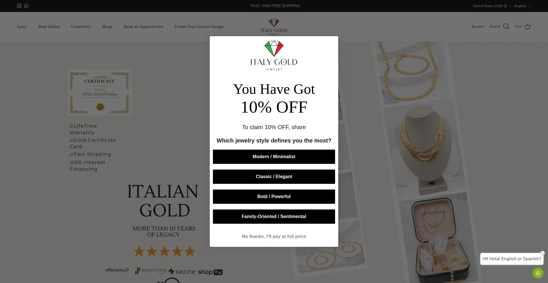 帮助保护他人,快在社交媒体上分享此页面吧!知道italygoldjewelry.com的人越多,骗子就越难得逞。 通过在社交媒体上分享此页面,帮助更多人发现可靠的italygoldjewelry.com吧!