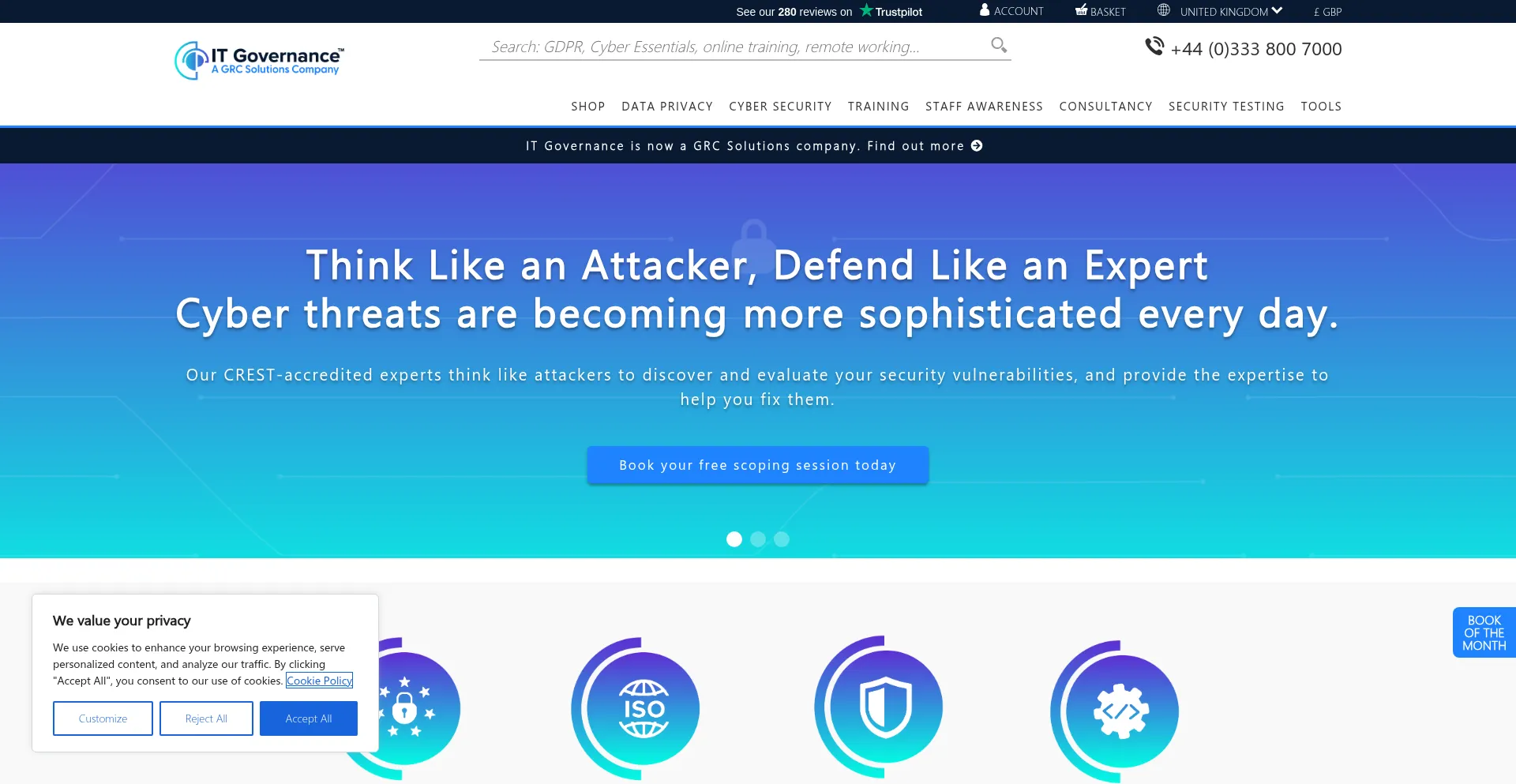 该网站实现符合GDPR或CCPA等隐私法规的cookie同意机制。这表明 itgovernance.co.uk 遵守数据保护标准并为用户提供对个人数据收集实践的控制。