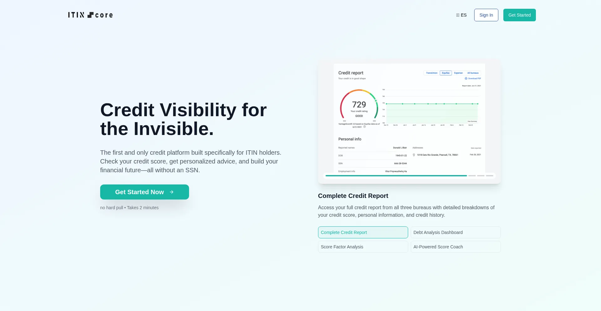 The first credit platform built for ITIN holders. Check your credit score, get personalized advice, and build your financial future without an SSN.