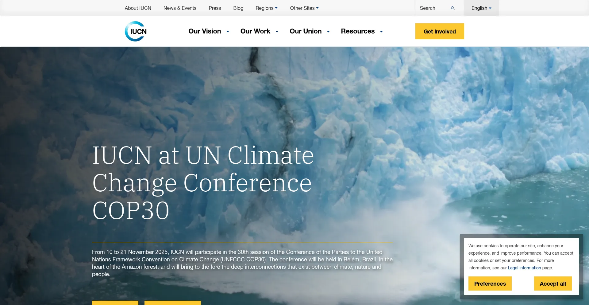 该网站实现符合GDPR或CCPA等隐私法规的cookie同意机制。这表明 iucn.org 遵守数据保护标准并为用户提供对个人数据收集实践的控制。