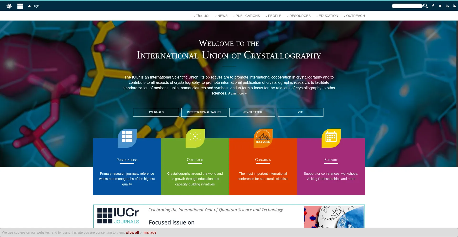 网站上存在社交媒体链接表明 iucr.org 在社交媒体上维护官方账户,这是可信度和参与度的积极信号。