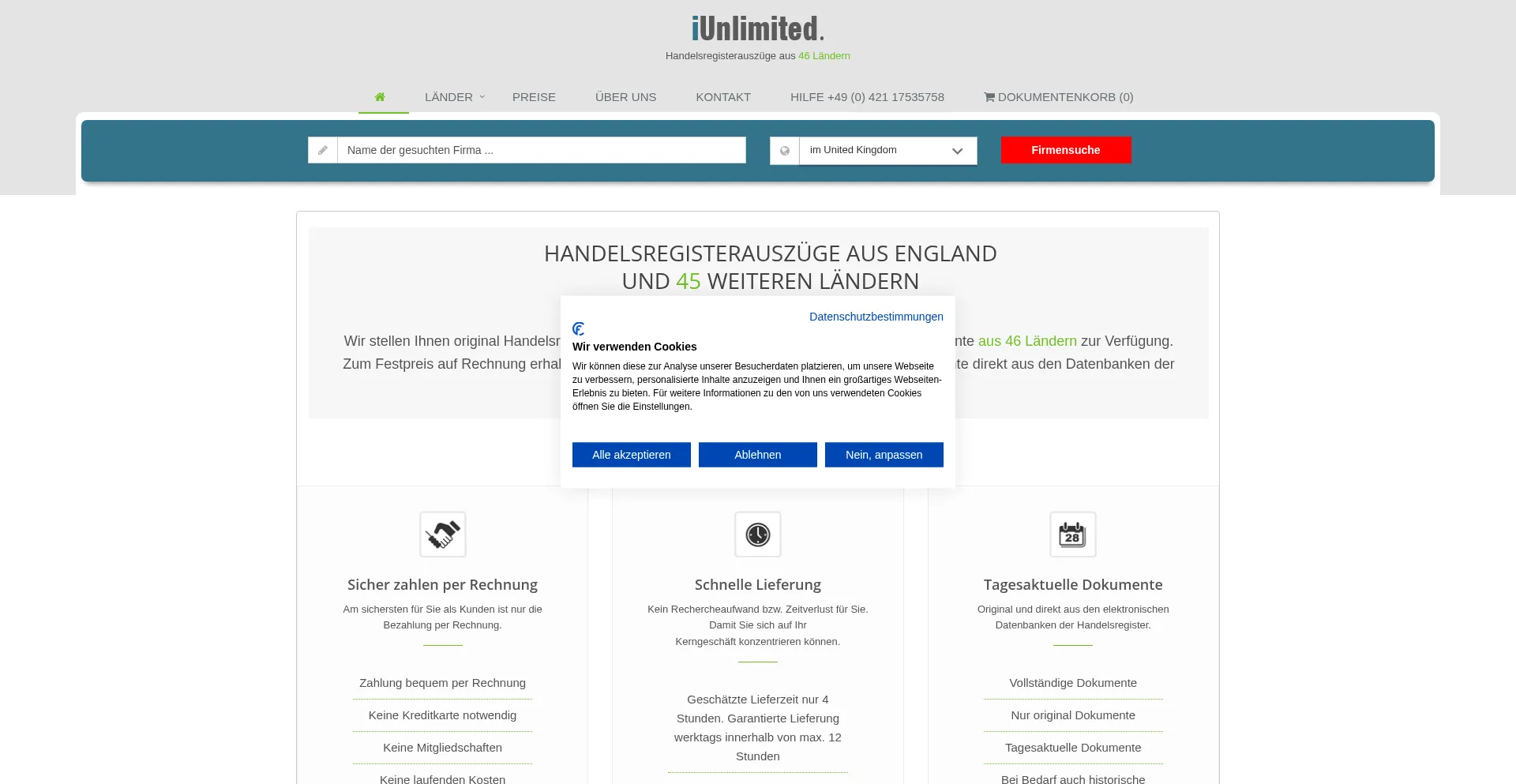 Handelsregister England - Handelsregisterauszüge aus 34 Ländern, Gibraltar, Holland, Luxemburg, Belgien, Spanien ... Firmenauskünfte, Jahresabschlüsse und Handelsregisterdaten