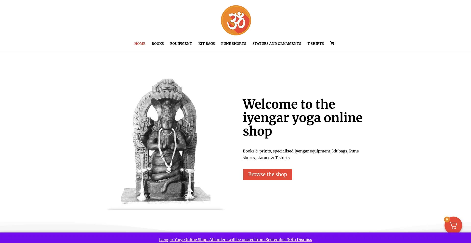 Iyengar Yoga Shop online Glos - books, specialised Iyengar equipment, kit bags, pune shorts, statues, ornaments, T shirts - unique BKS Arogya Yoga Iyengar gear.