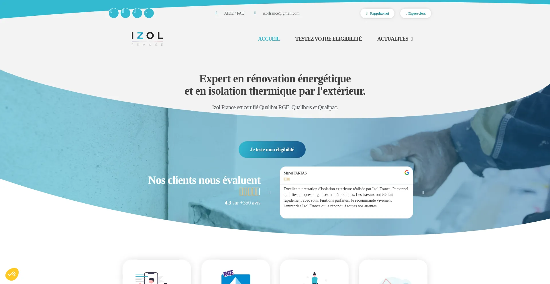 Izol France, numéro 1 de l'isolation thermique par l'extérieur en France ! Faites votre demande d'éligibilité gratuite aujourd'hui.