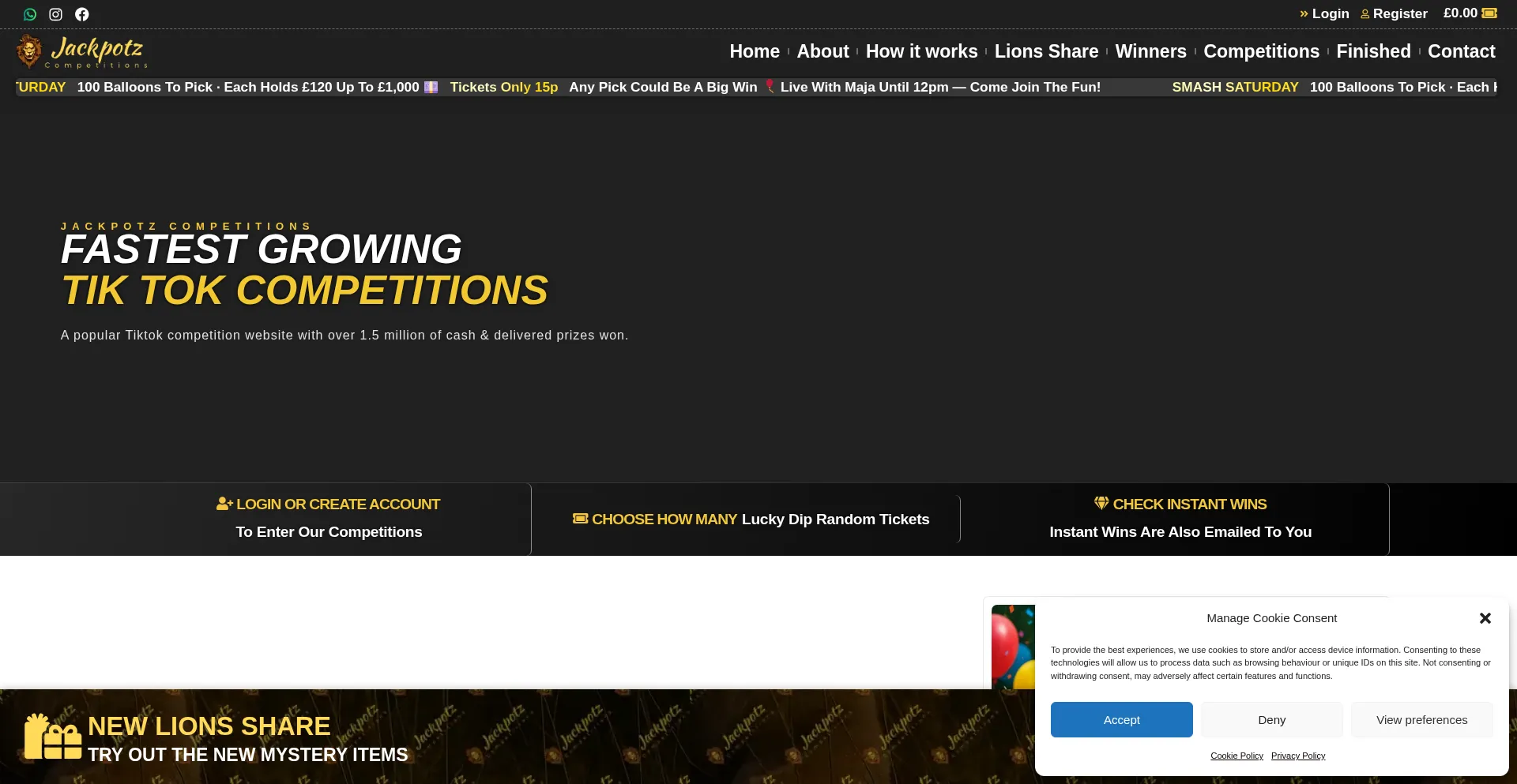 Jackpotz Competitions – Tik Tok Live Competitions & Tombola