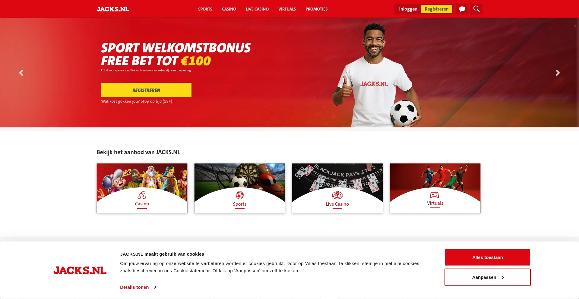 Welkom bij JACKS.NL! Registreer en claim een welkomstbonus. Ontvang bv. tot €250 casino bonus, of één €100 Free Bet voor onze sportsbook!
