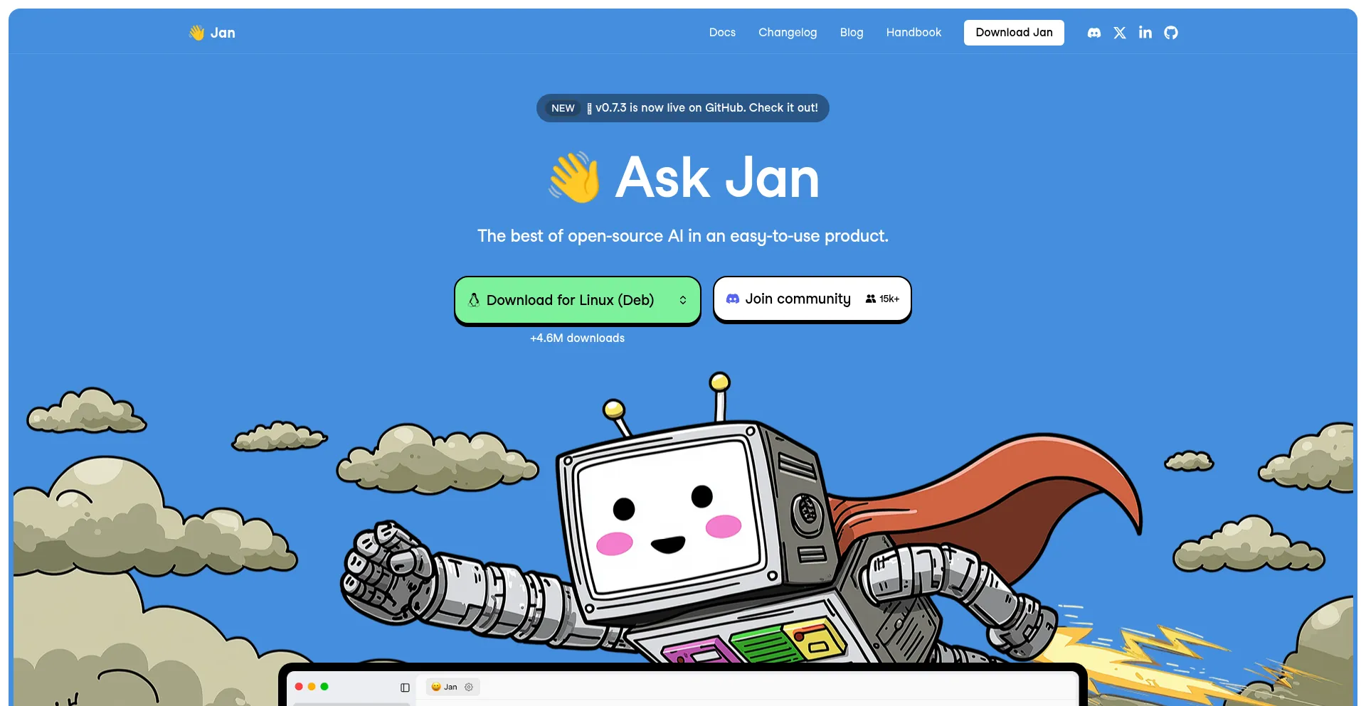 网站上存在社交媒体链接表明 jan.ai 在社交媒体上维护官方账户,这是可信度和参与度的积极信号。