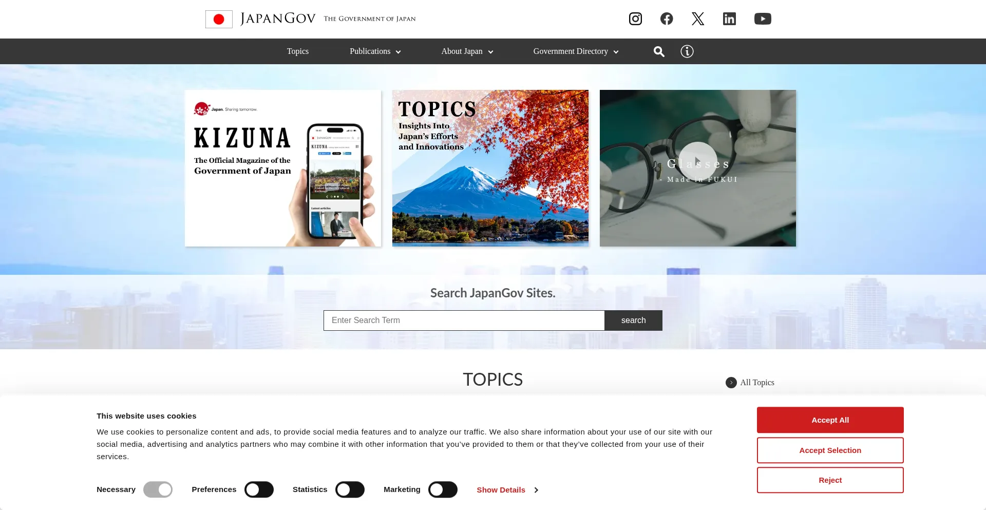 The official website of the Government of Japan, provides a wealth of information on important policies and efforts to spread fruit of innovation and technology.