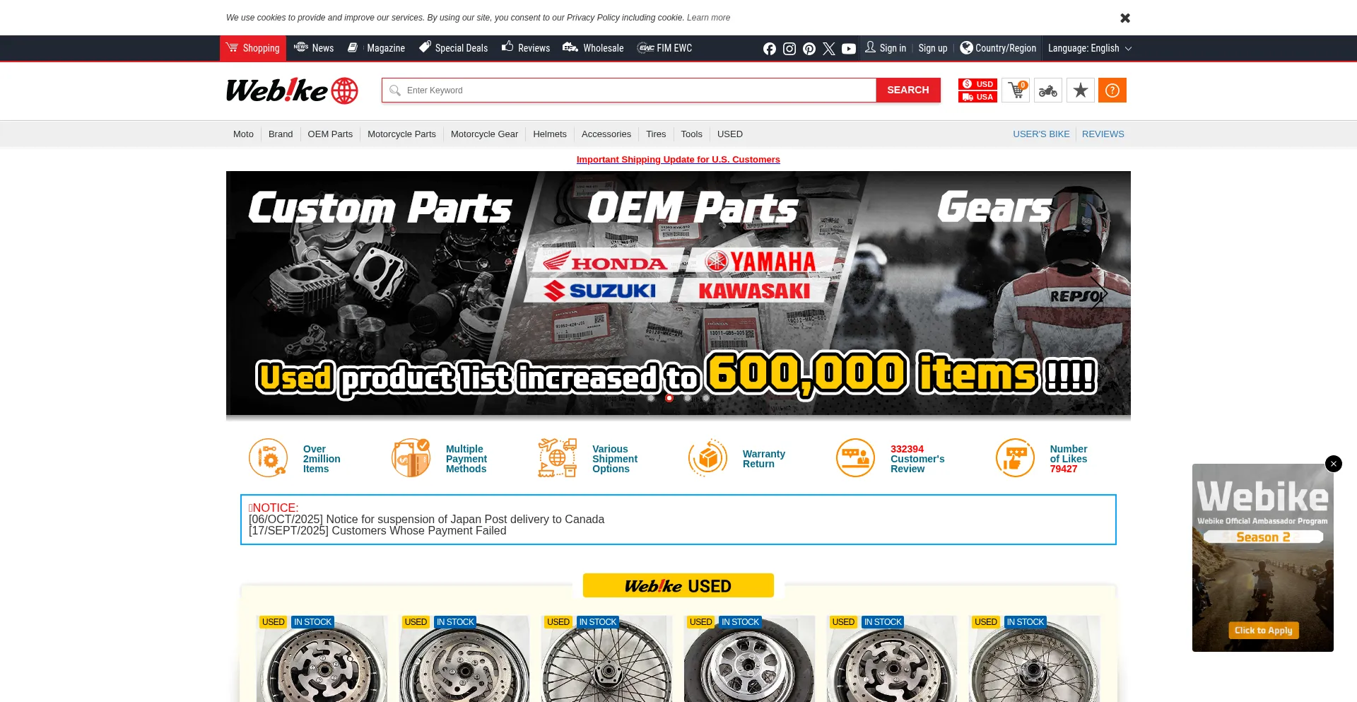 Webike: Motorcycle Parts, Accessories, Gears, OEM parts & Reviews